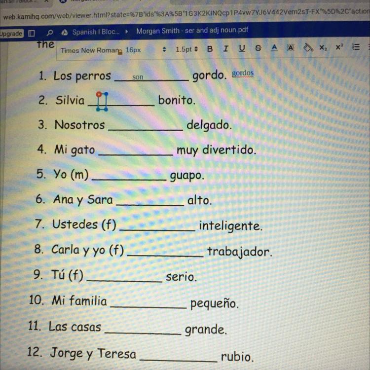 Please answer correctly. I will give brainlest if correct. Fill in the blank with the correct form of ser and change the adjecti