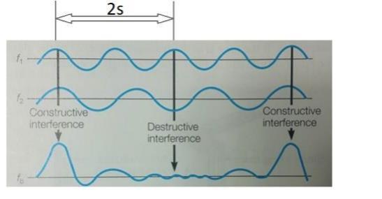 The frequency of wave 2, f₂ = 1.5 cycles/(2 seconds) = 0.75 cycle/second = 0.75 Hz