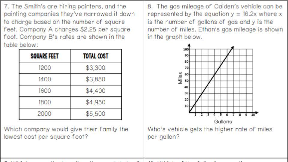 According to the table for Company B's rates, if you divide the total cost by the square footage in each row, you would get $2.75/ft² each time. Therefore, Company A would charge the Smiths a lower cost per square foot.