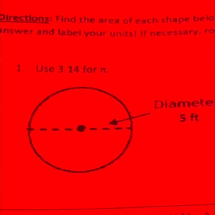 We know the circle's diameter is 5 feet, but we don't know the radius. Remember the diameter passes through the center from one side to the other, while the radius connects the center and the side. Therefore, the radius is half the diameter.
