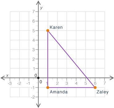 The graph shows the locations of Karen's, Amanda's, and Zaley's houses on a coordinate plane. Each unit on the graph represents 1 block.