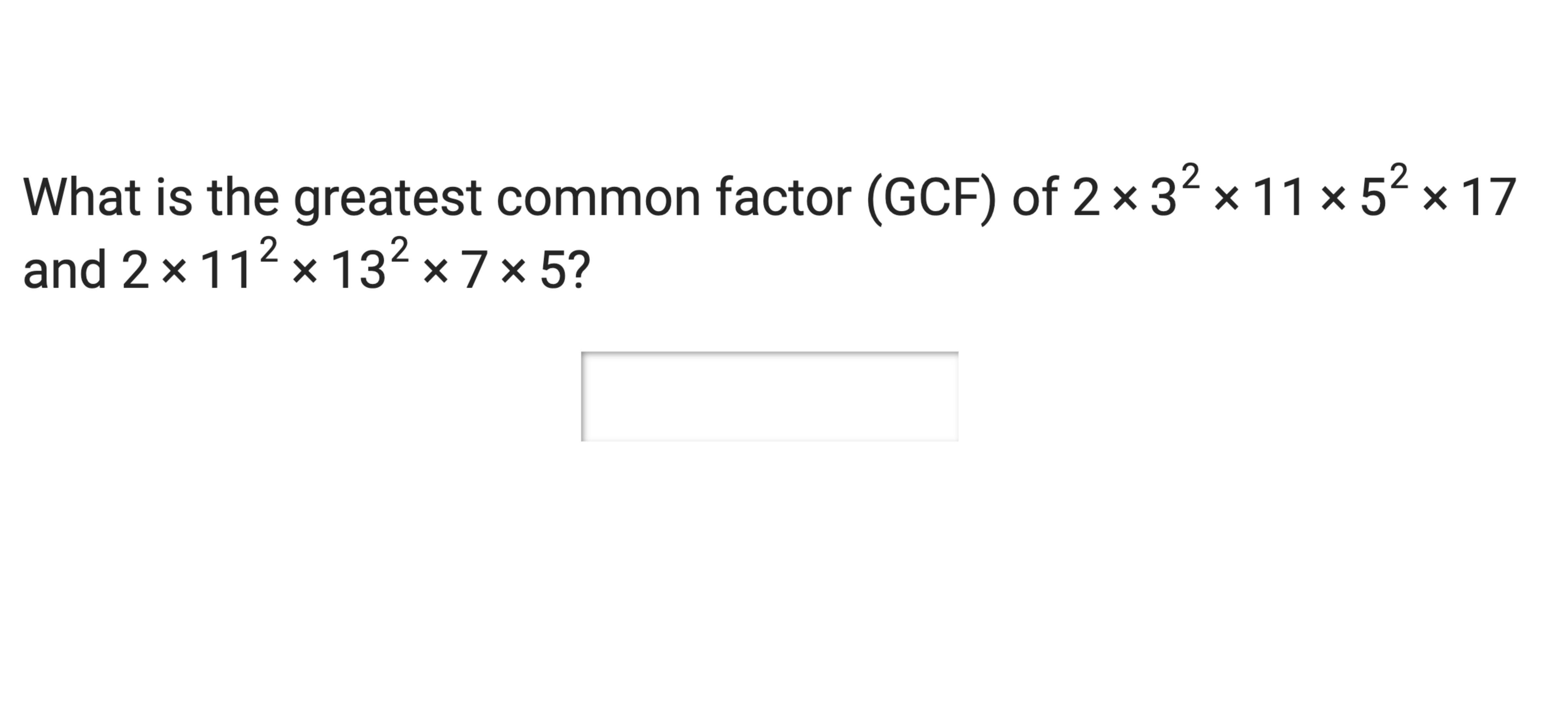 Ignoring exponents (for the moment), the numbers that appear in both products are 2, 5, 11. (I've highlighted them so you can see them more easily.)