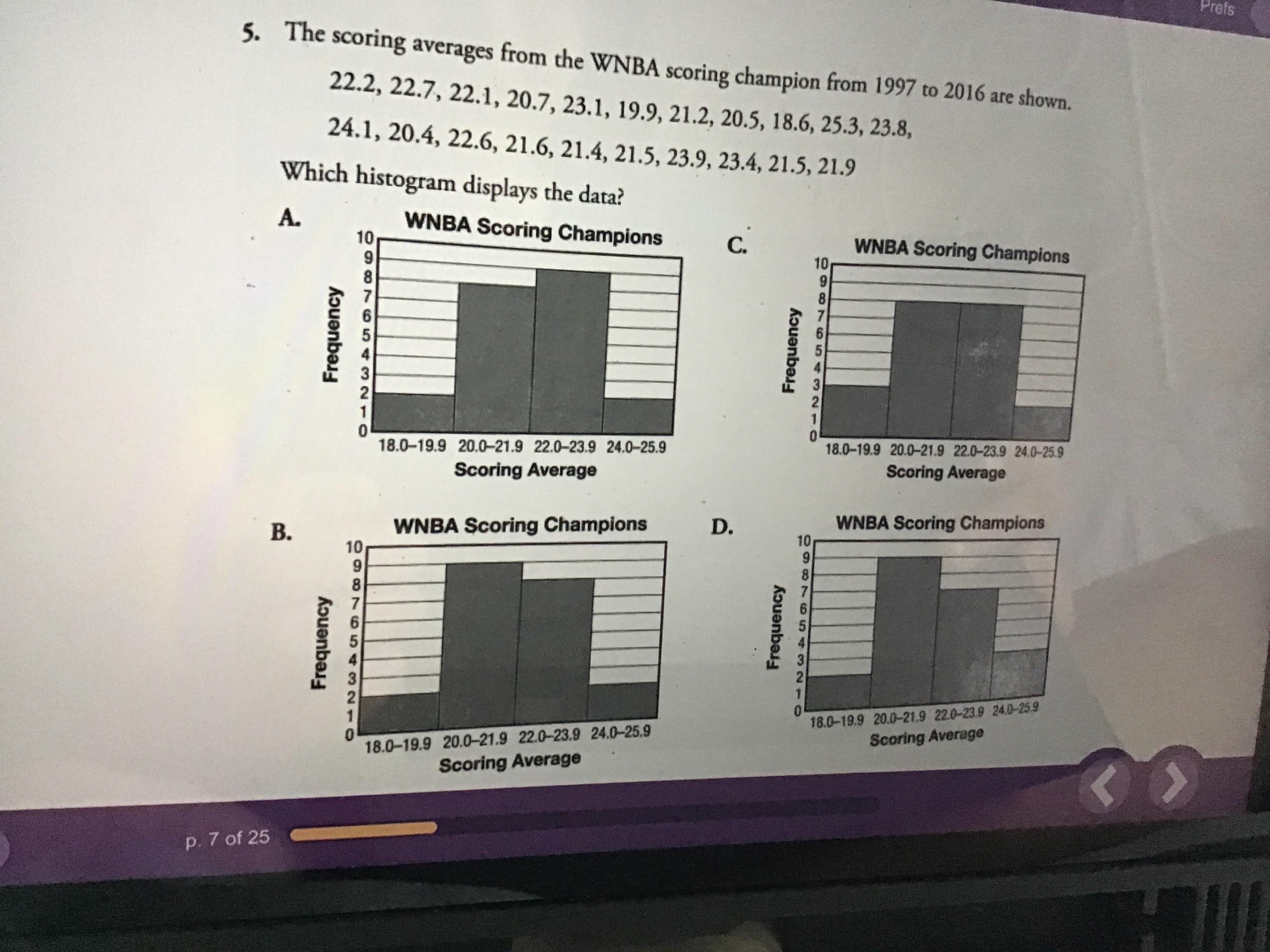Both B and D have graphs with 9 values that are between 2-21.9, however A only has 8 values.