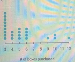 To get number of frequency greater than 3 we have to use the result in the result in the graph to obtain the estimate. Look at the graph below, when you count the dots that are on number of boxes purchased greater than 3, you will get 15.