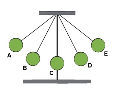 What happens in this pendulum is that at point A, there's only gravitational potential energy (no velocity=no kinetic energy)