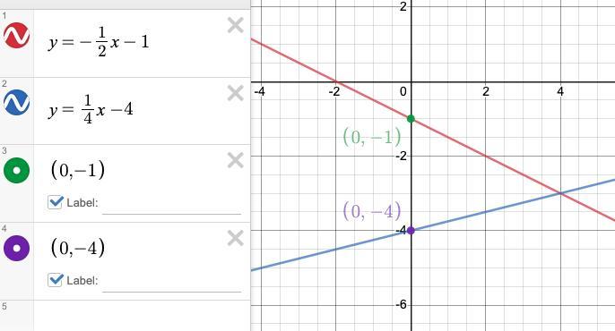 Answer: The y-intercept of y = -1/2x -1 is (0,-1)