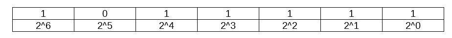 2^6+2^4+2^3+2^2+2^1+2^0 = 64+16+8+4+2+1 = 95
