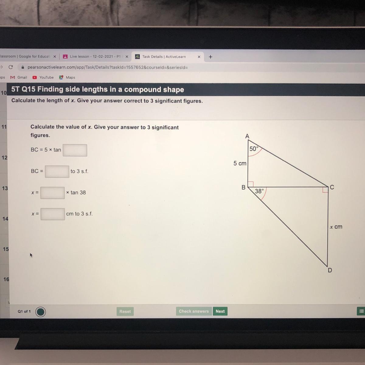 BC = 2x + 7