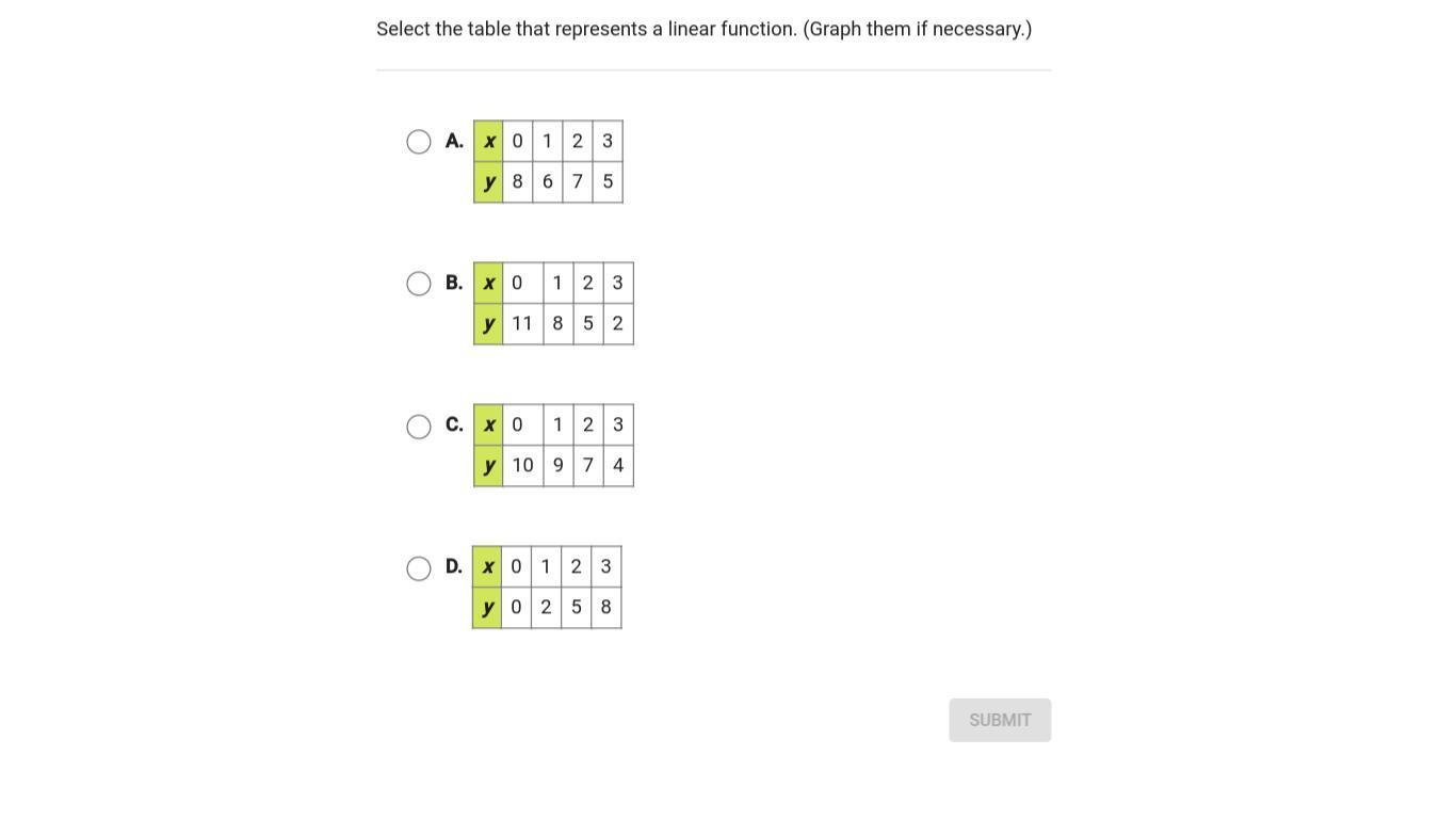 b is the answer because it hits positive two on the x axis and -3 on the y axis