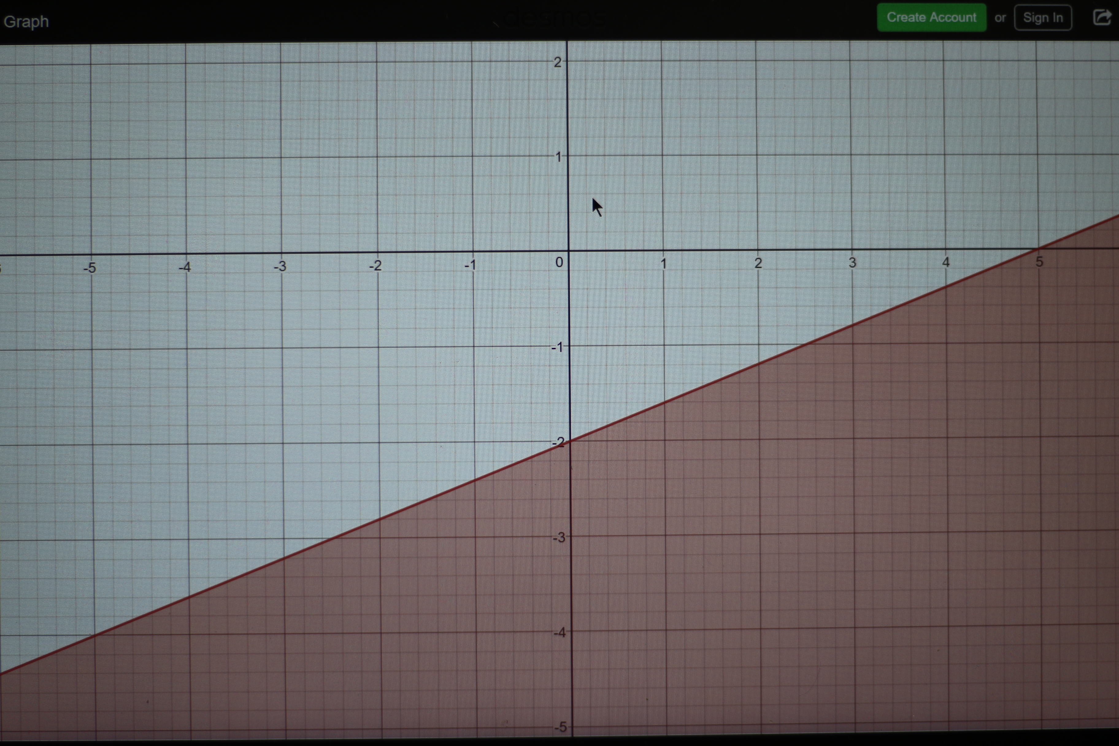 All you have to do is make the equation y< or equal to 2/5x -2. And less than is shade under.