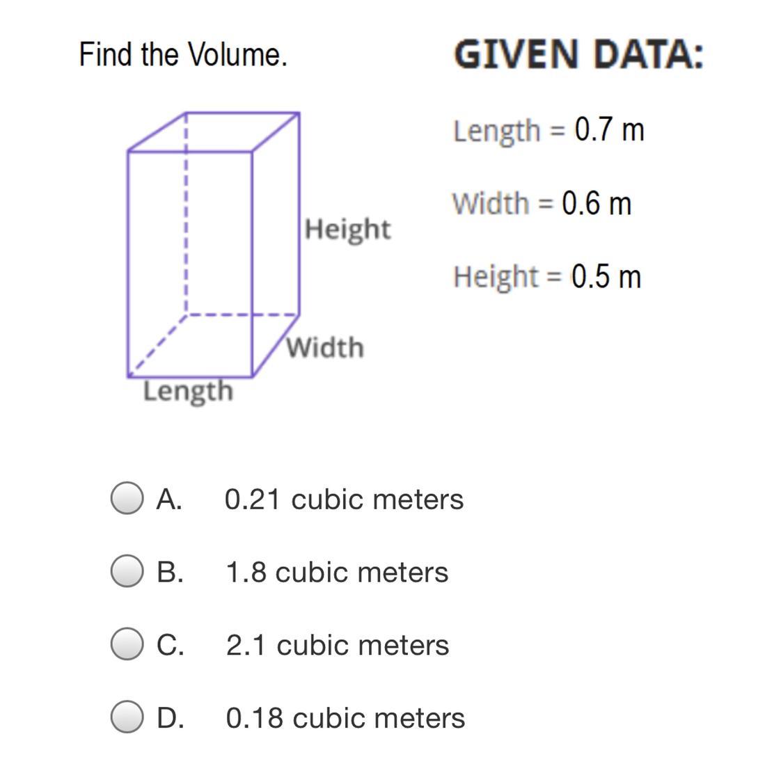, since you are multiplying the area of the base (a circle) by the height of the cylinder to find the volume. Therefore, the volume of this cylinder is:
