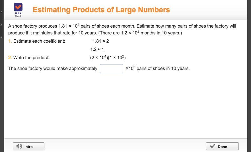 - Step 1: Given the number of shoes produced each month = 1.81 × 10^4 pairs and number of months in 10 years = 1.2 × 10². Estimate each coefficient.