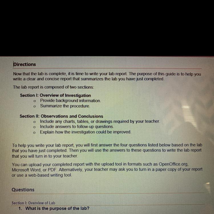 Lab reports are written to describe and analyze a laboratory experiment that explores a scientific concept. They are typically assigned to enable you to: Conduct scientific research. Formulate a hypothesis/hypotheses about a particular stimulus, event, and/or behavior. A lab report gives specific information about a test, experiment or research project that was completed in a lab. Generally, lab reports are scientific in nature and include many pieces of information, including the materials used, the methods, the results and a discussion. One very important piece of the lab report is the purpose statement. This statement captures the original purpose of the test, experiment or research. The purpose statement is referenced various times throughout the lab report.