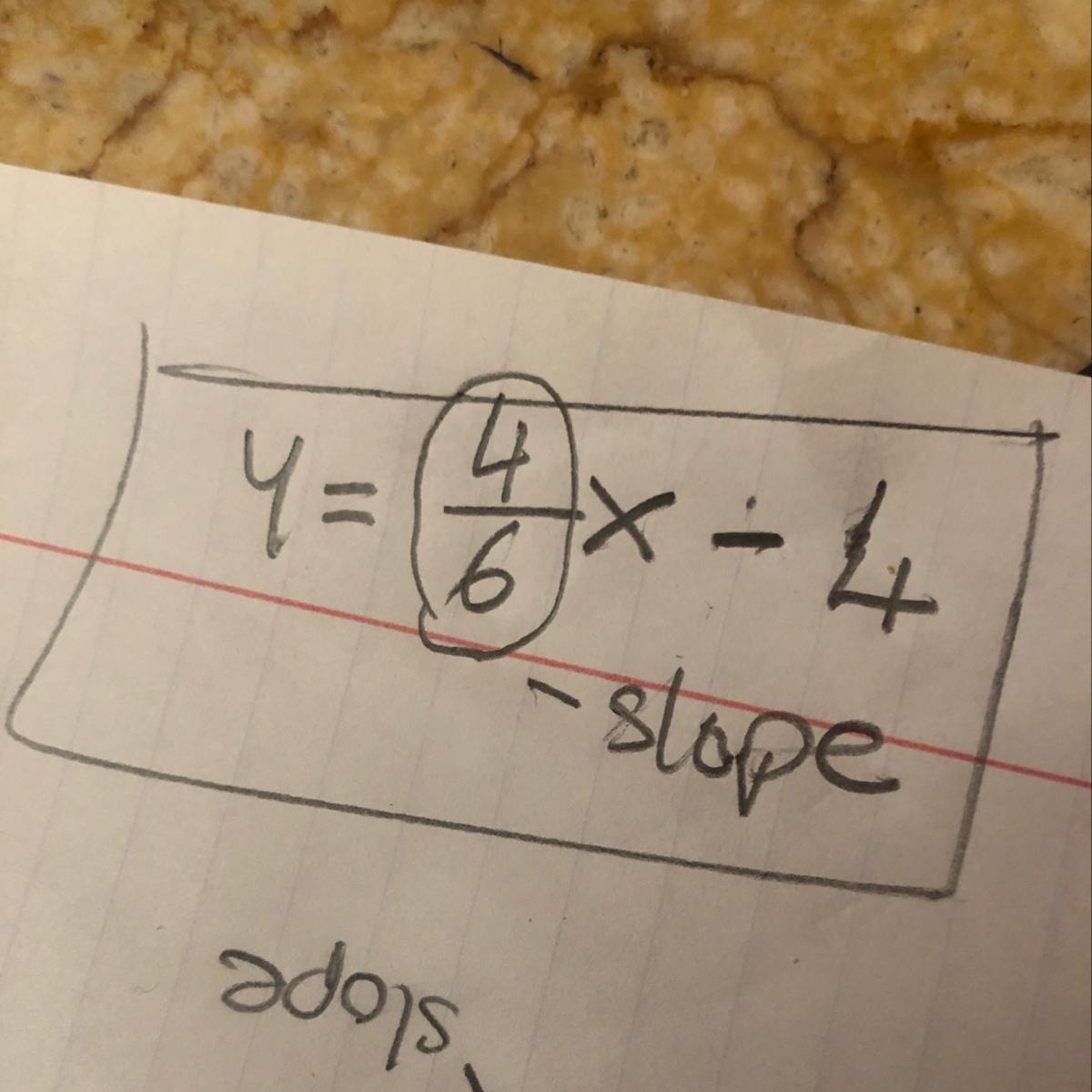 The slope is 4/6 because its going up by 4 over by 6 .hope this helps