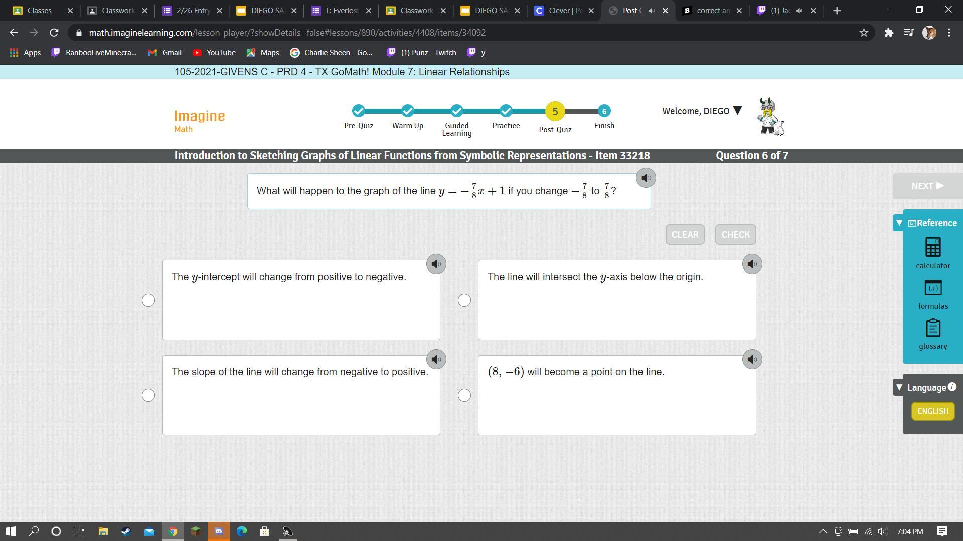 C -7 - 3/4 = 0