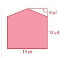 The rectangle is 15 multiplied by 12, which is 180. And because the triangle is not a right triangle, you can just think of it as a rectangle that was broken apart. So 3 multiples by 15, 45. Add 45 and 180 to get the answer.