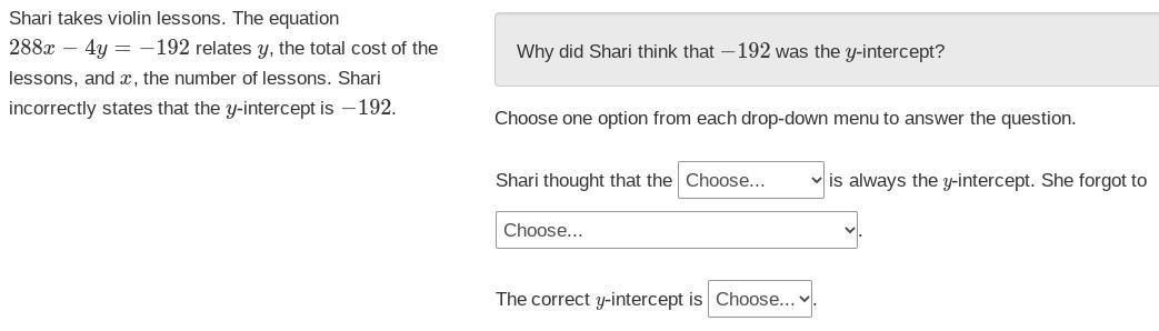 second one is she forgot to put x on the other side and get rid of y's cooefficient