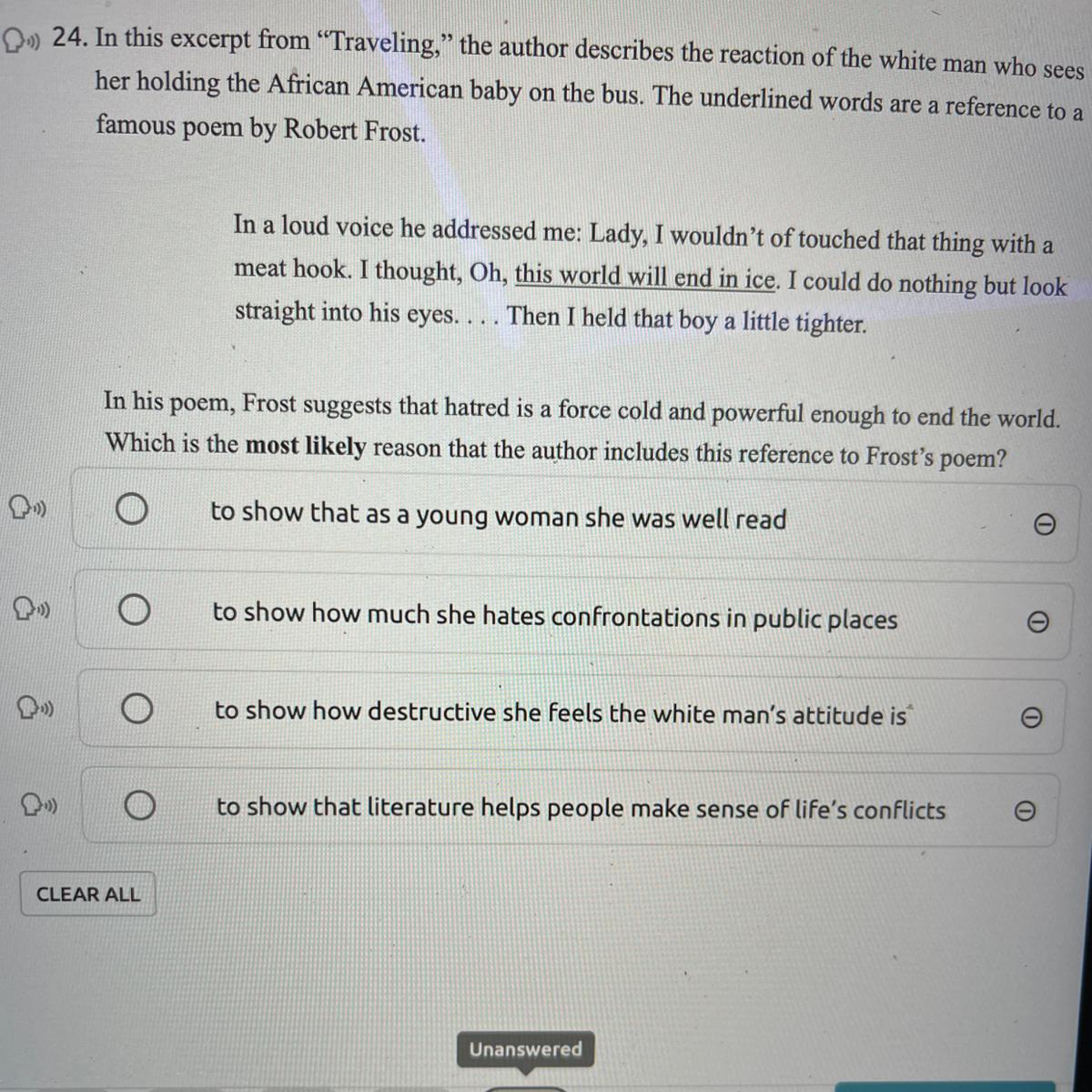 Honestly, I know that it is either A. or D. I would most likely go with D.