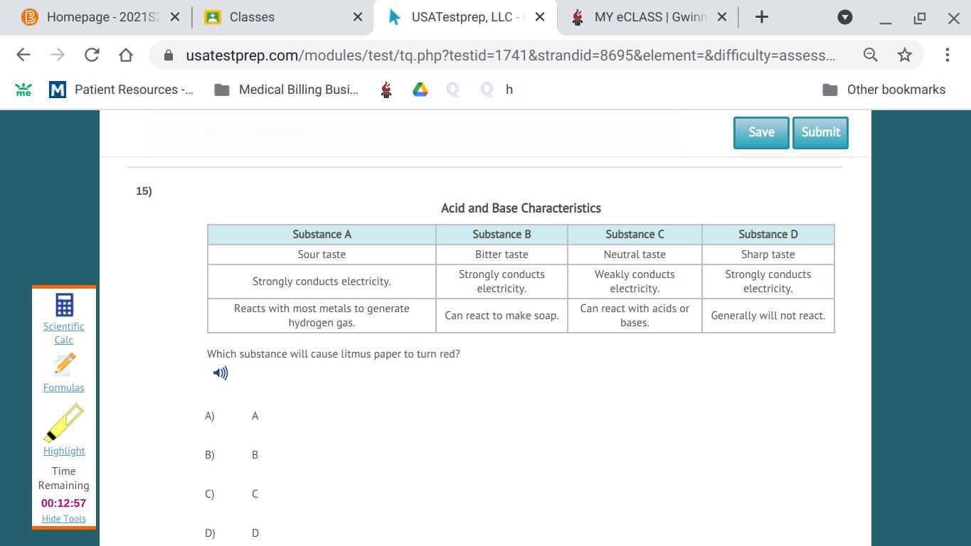 Acids turn litmus paper red. The characters of acids are given by substance A. An acid tastes sour and also conducts electricity well because of ionization properties. Additionally, Hydrogen gas is produced from acid-base neutralizations because most if not all acids contain hydrogen.