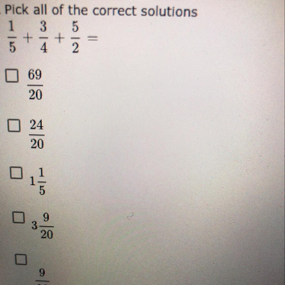 Pick all of correct solutions 1/5+3/5+5/2
