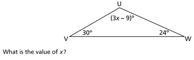 The measures of the angles in triangle UVW are shown in the diagram below: