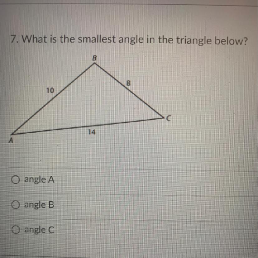7. What is the smallest angle in the triangle below?