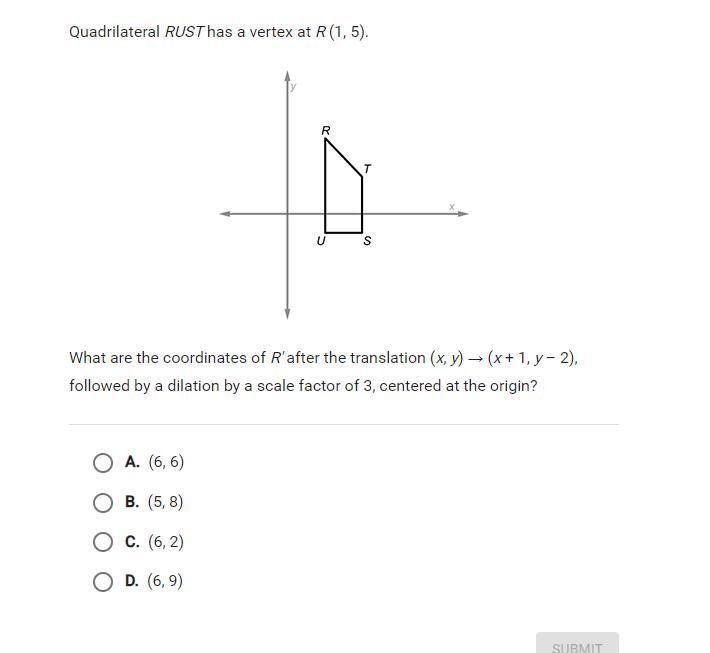Quadrilateral RUST has a vertex at R (1,5).