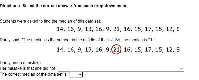 Median is the number found in the very middle, so Darcy is correct about what a median is.
