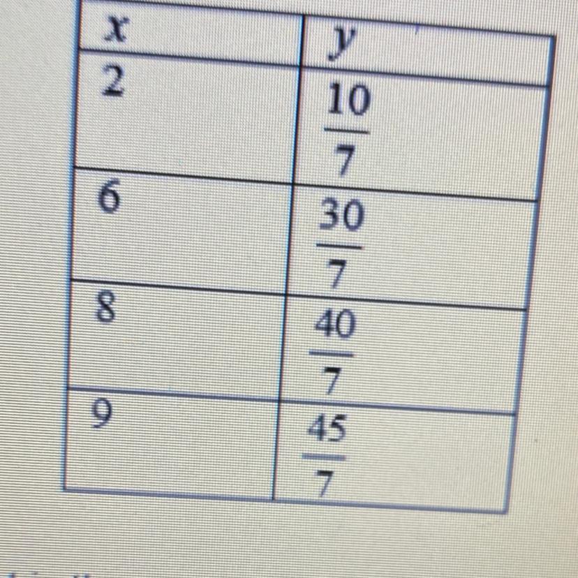 In the following table y is proportional to x.