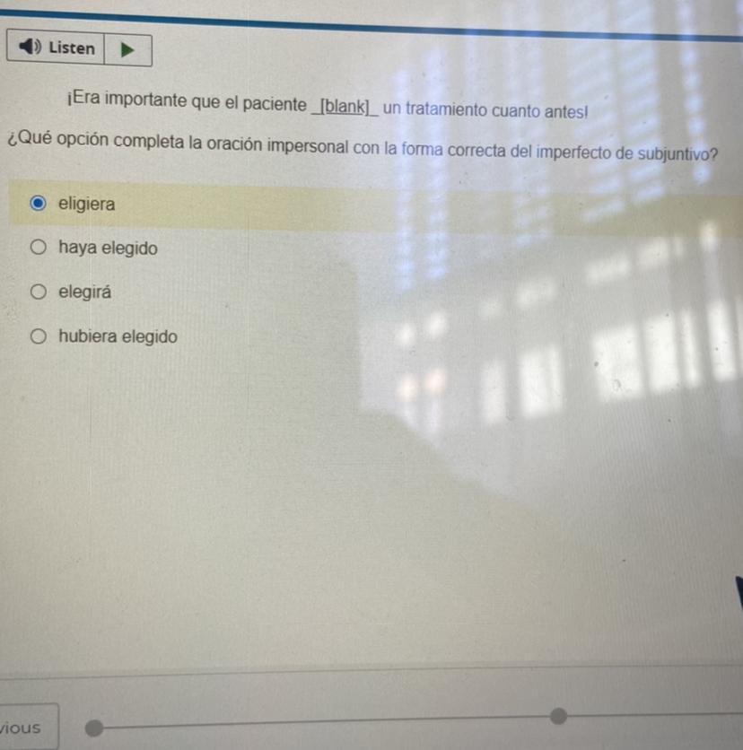 Era importante que el paciente <u><em>hubiera elegido</em></u> un tratamiento cuanto antes.