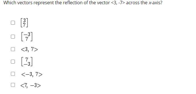 Which vectors represent the reflection of the vector across the x-axis?