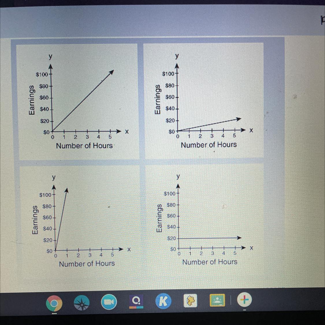 Each week, Phyllis earns $20 per hour. Which graph expresses the relationship