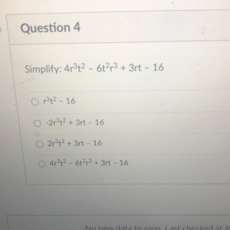 Simplify: 4r342 - 6t2r3 + 3rt - 16