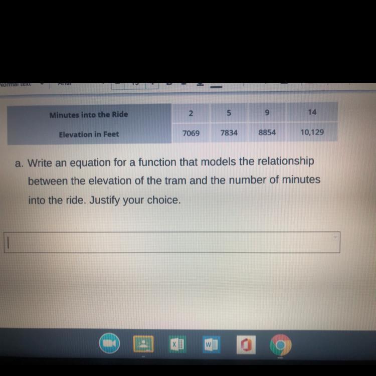 We have the following relationship between the minutes into the ride (x) and the elevation of the tram (y):