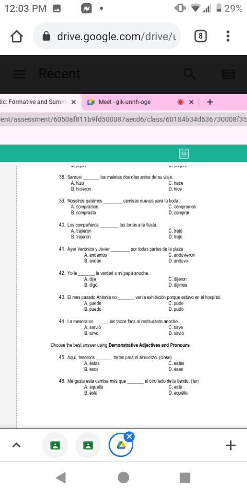 Please help with my spanish I'm begging. Multiple choice . You may have to zoom in. Giving BRAINLIEST .