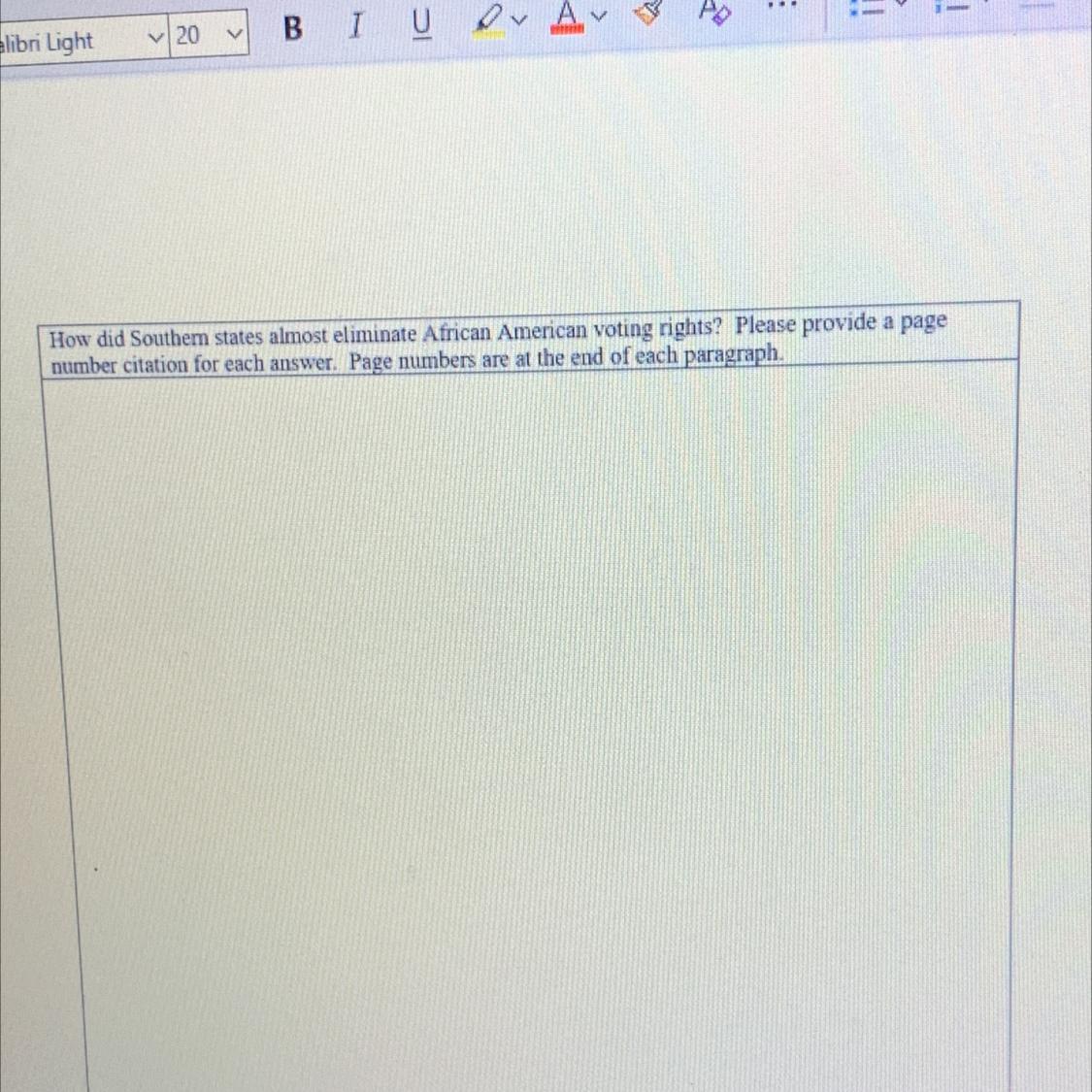 In 1870, the 15th Amendment was ratified. It stated that, "The right of citizens of the United States to vote shall not be denied or abridged by the United States or by any State on account of race, color, or previous condition of servitude."