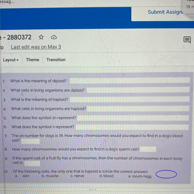 1. The meaning of a diploid chromosome is a chromosome that has two complete pairs (sets) of chromosomes (from each parent).