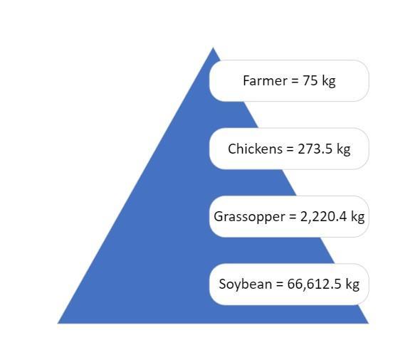 The number of grasshoppers (gh) one chicken feeds on in a year is given as follows;