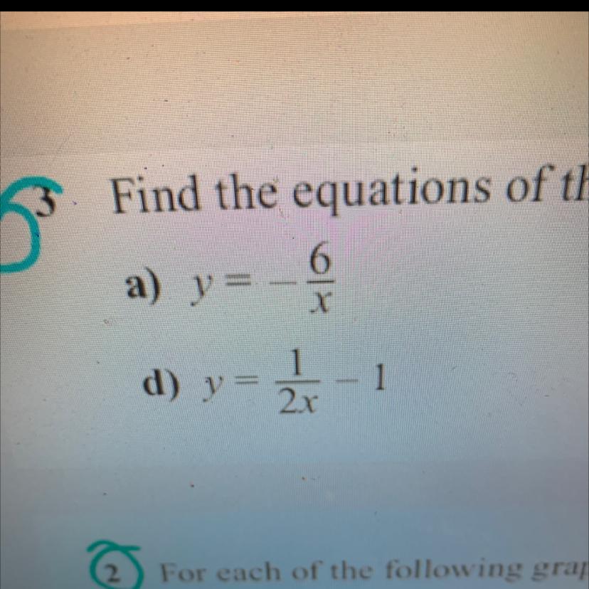 b) y = 1/(2·x) - 1 has two asymptotes;