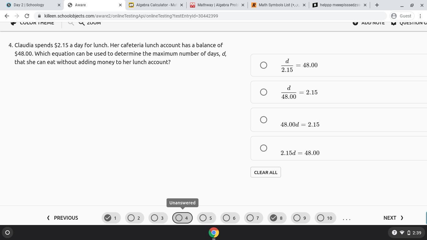 The two points on the line are open, so they will not be included in the solution set, which means they will be greater than or less than. No number can fit both inequalities, so it must be “or”. The only one that fits this is c.