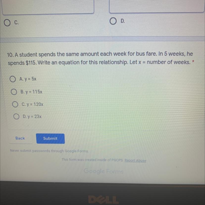 y = amount in dollars