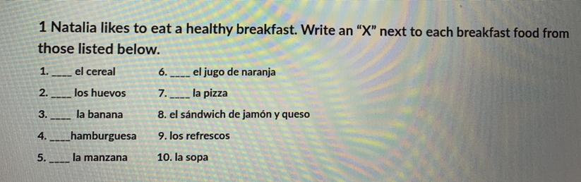 The "X" will go on number 1,2,3,5,6,10 hope this helped .