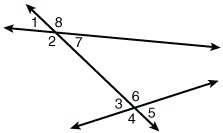Also, you can observe in the image angles 3 and 5, 2 and 8, 7 and 1, 6 and 4, all of these pairs are vertical angles, which means they are congruent by definition.