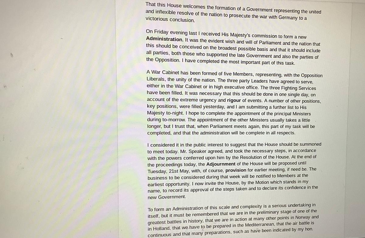 1. Churchill wanted to warn both politicians and the population about how quickly this new administration would have to move and plan.