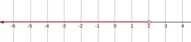 This graphs as an open circle at x=2 and shading of the number line to the left from there. See the attachment for the graph.