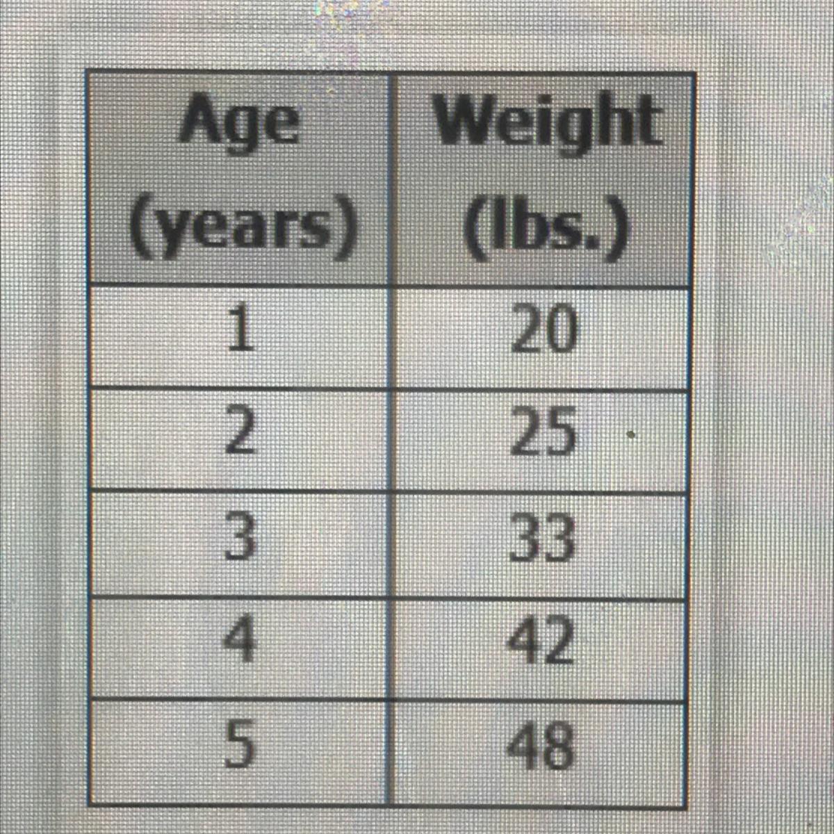 Answer : The average rate of change between 1 year and 4 years of age is 7.33 lbs per year.