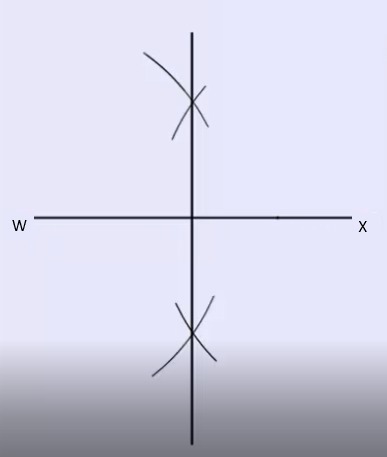 1. Place the compass tip at point W and open the compass to more than half the radius of segment WX.