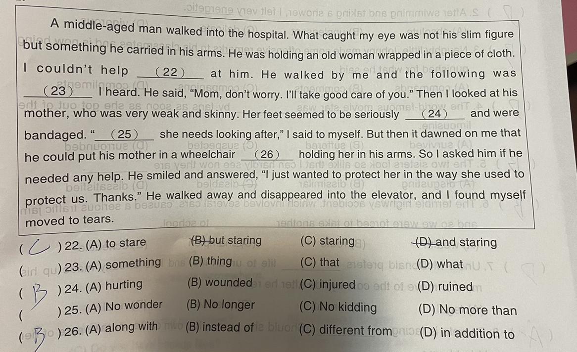 22. (staring) 23. (what) 24. (injured ) 25.( No wonder) 26. (along with)