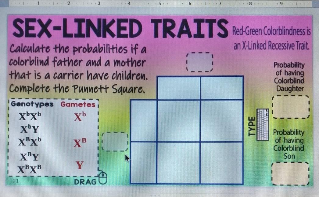 Answer: The genotypes go in the boxes to the upside and left of the four boxes and then find the possible genotypes of the offspring by filling in the punnet square. So for one of them two of the genotypes on the outside of the punnet square could be XbXb and XbY and because the Xb is in front of the Y the Xb is dominant and Y is recessive. So the for one punnent square the answer would be XbXb and XbY = XbXb. and the XbXb and XbY go outside the punnet square and the XbXb that is from the XbXb and XbY goes in the four boxes of the punnet square.