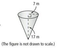 Question:A water tank is shaped like the cone shown here. How much water can the tank hold? Use 3.14 for . If water is drained from the tank to fill smaller tanks that each hold 200 m³ of water, how many smaller tanks can it fill